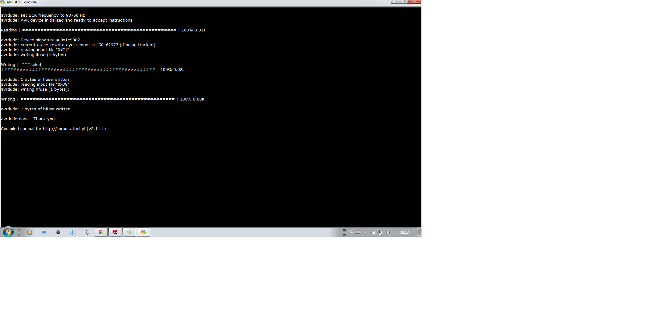 Ten napis "failed" przy writingu lfusów w pierwszym poście też jest ok?